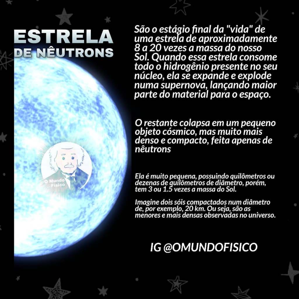 Por exemplo, essa estrela é muito pequena, possuindo quilômetros ou dezenas de quilômetros de diâmetro, porém, tem 3 ou 1.5 vezes a massa do Sol. Imagine dois sóis compactados num diâmetro de, por exemplo, 20 km. Muita massa em um espaço muito pequeno não é? Por isso esses objetos são absurdamente densos! Ou seja, podemos dizer que elas são as menores e mais a densas estrelas observadas no universo.